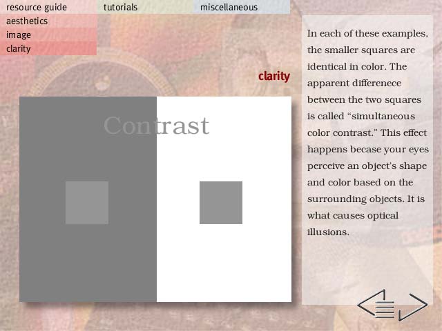 The program is divided into two major sections, a knowledge base which covers all the aforementioned material in various levels of detail. The other part of the program includes three example projects. These projects are simpler in scope and are along the lines of difficulty the audience will probably try to produce. These were created to give the audience an opportunity to see the concepts discussed in the knowledge area actually applied. As the issues in the sample programs are discussed, the audience has the opportunity to explore individual topics in depth by following hypertext to the knowledge area.